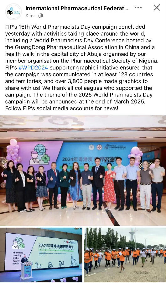 2024年廣東省藥學(xué)會(huì)世界藥師節(jié)活動(dòng)在FIP官微頭條報(bào)道